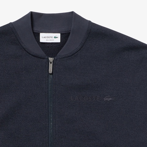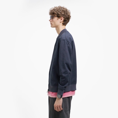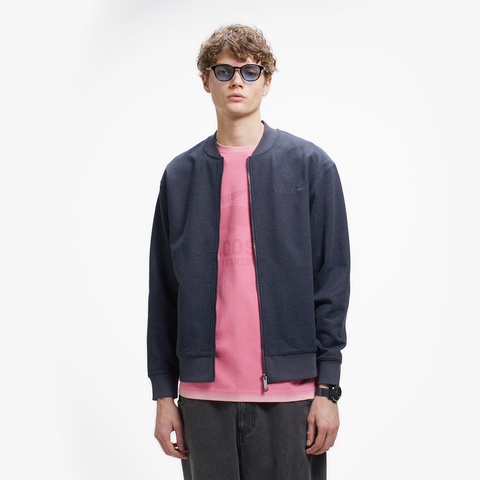 シンプルなデザインをヘザーカラーが引き立てるスウェットジップブルゾン