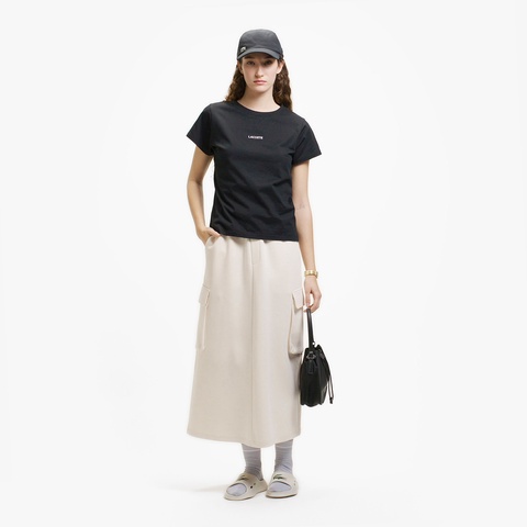 ・前身頃の中央にミニマルサイズのブランドネームロゴ