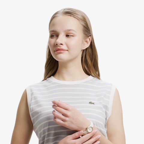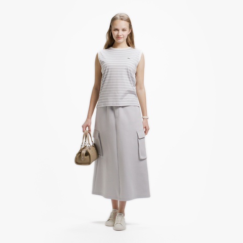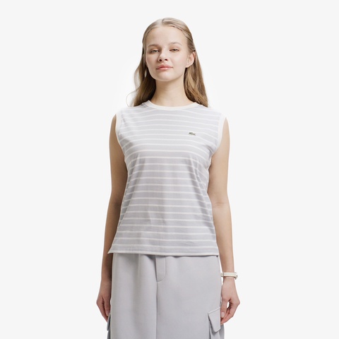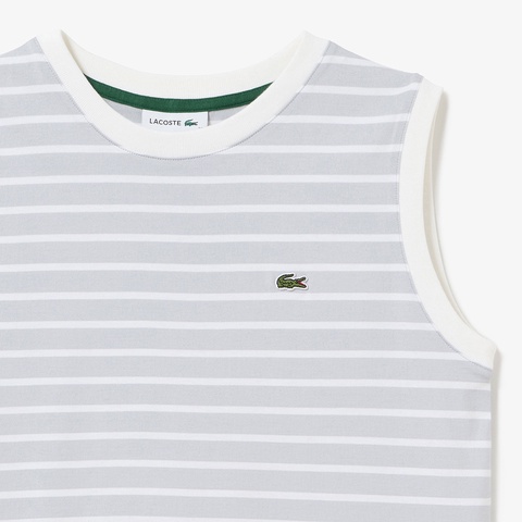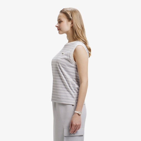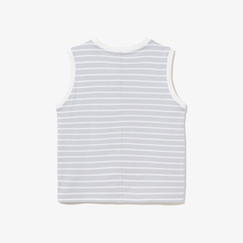 クリーンなボーダー柄とレギュラーフィットで、汎用性に優れるノースリーブTシャツ