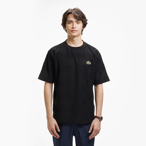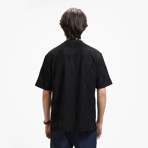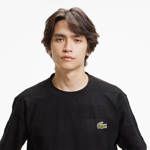 同色のパイル地切り替えでボーダーを表現したTシャツ