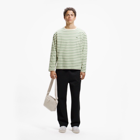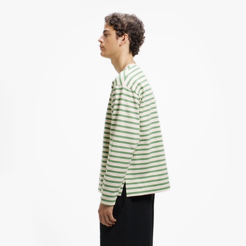 首元にニュアンスを宿すスクエアネックボーダーTシャツ