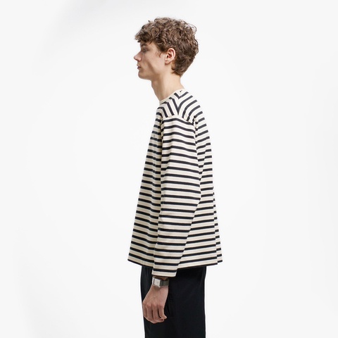 首元にニュアンスを宿すスクエアネックボーダーTシャツ
