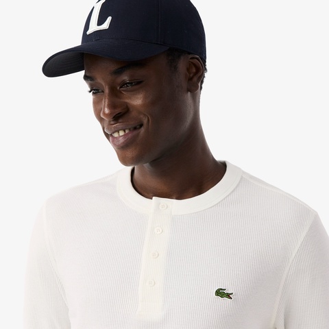 上品な表情とやわらかな着心地を両立したワッフル素材のヘンリーネック長袖Tシャツ