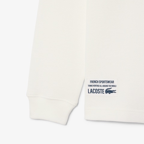 ・左胸にワニロゴパッチ、裾にブランドネームロゴラベルを配置