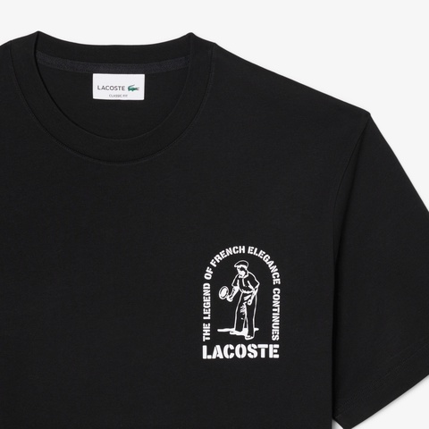 ・左胸にワンポイントサイズでルネ・ラコステのグラフィクプリント