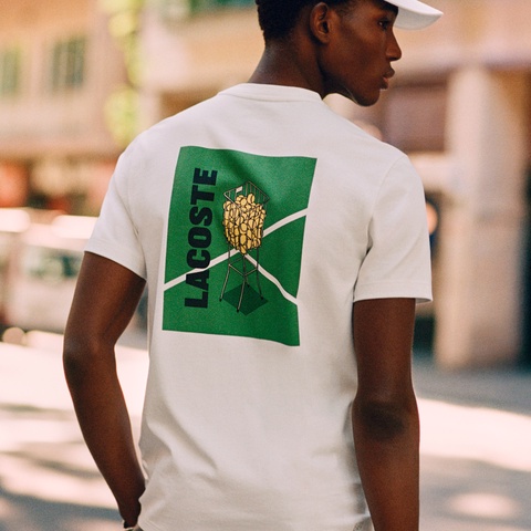 ラコステのDNAを背中で語るウルトラドライバックプリントTシャツ