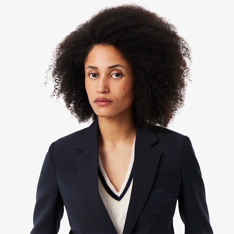 エレガンスを引き立てるスリムカットのウールブレンドブレザー
