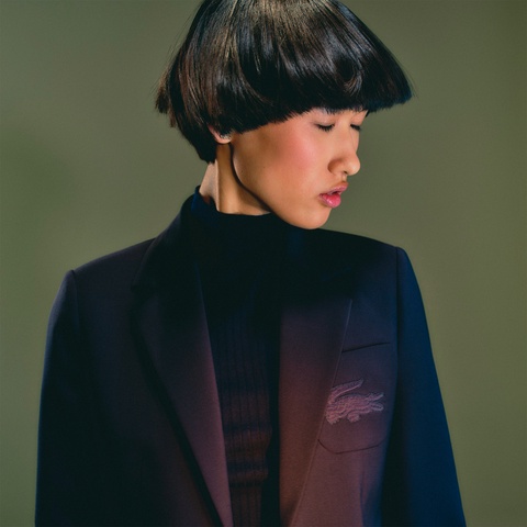 ・左胸ポケットにオーバーサイズの同色ワニロゴステッチ
