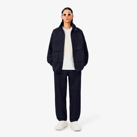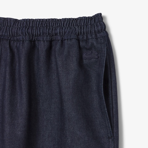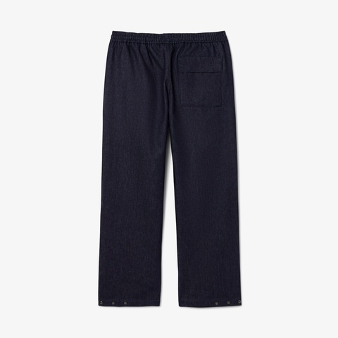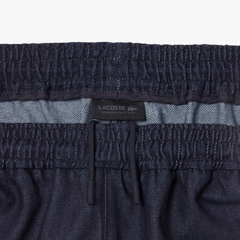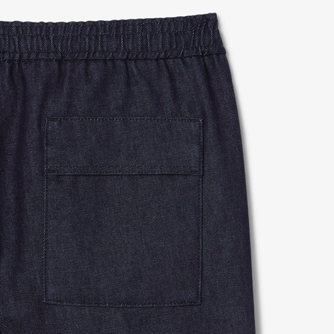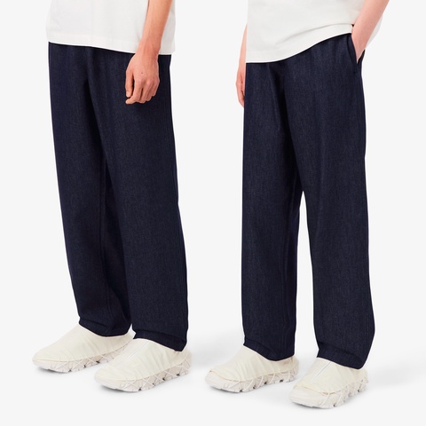 洗練されたミニマルデザインで整えたインディゴデニムジョガーパンツ