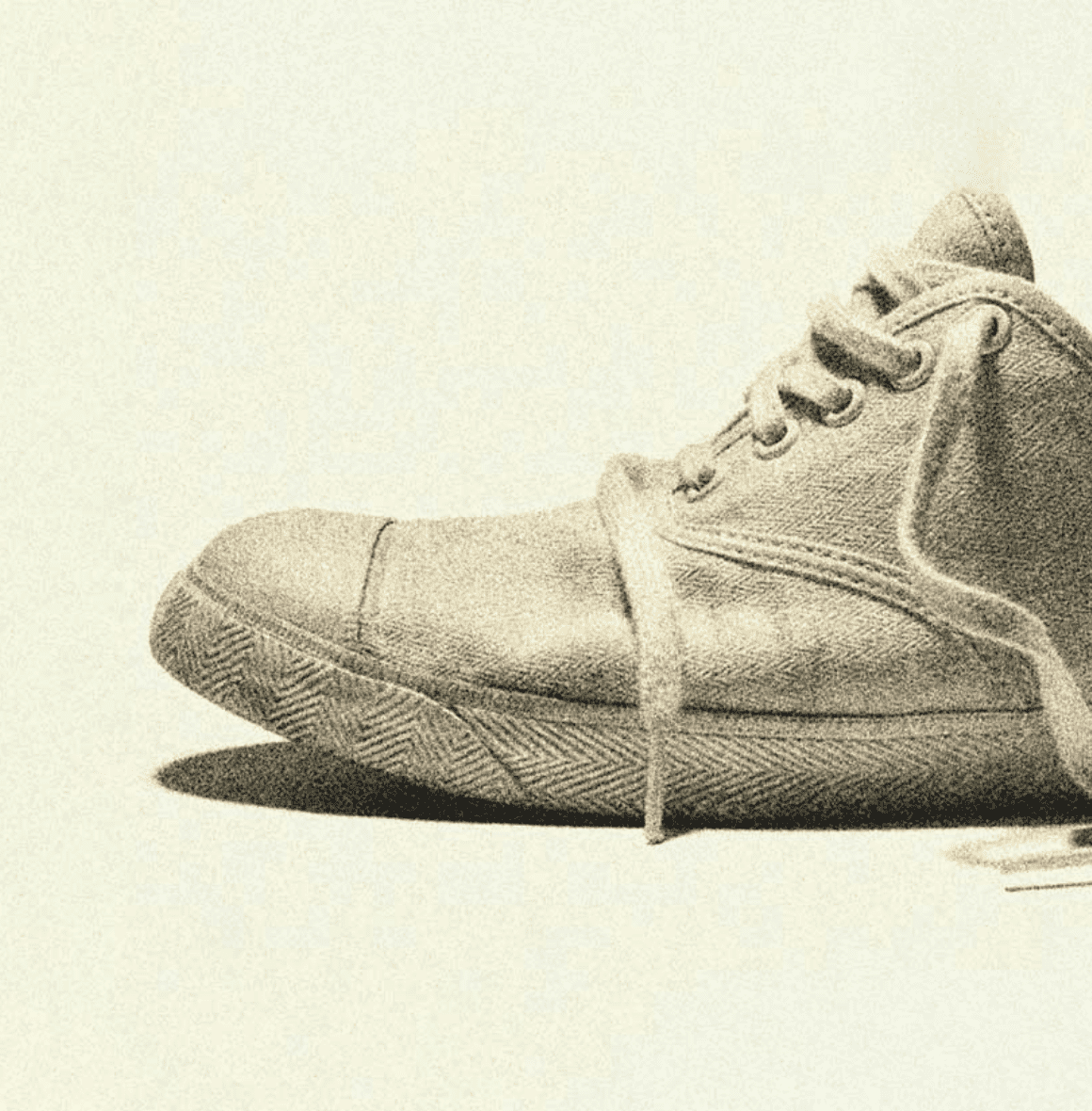 つま先部分のラバーによる補強。ヘリンボーン柄のコットンキャンバス生地。サイドに開いた通気孔。