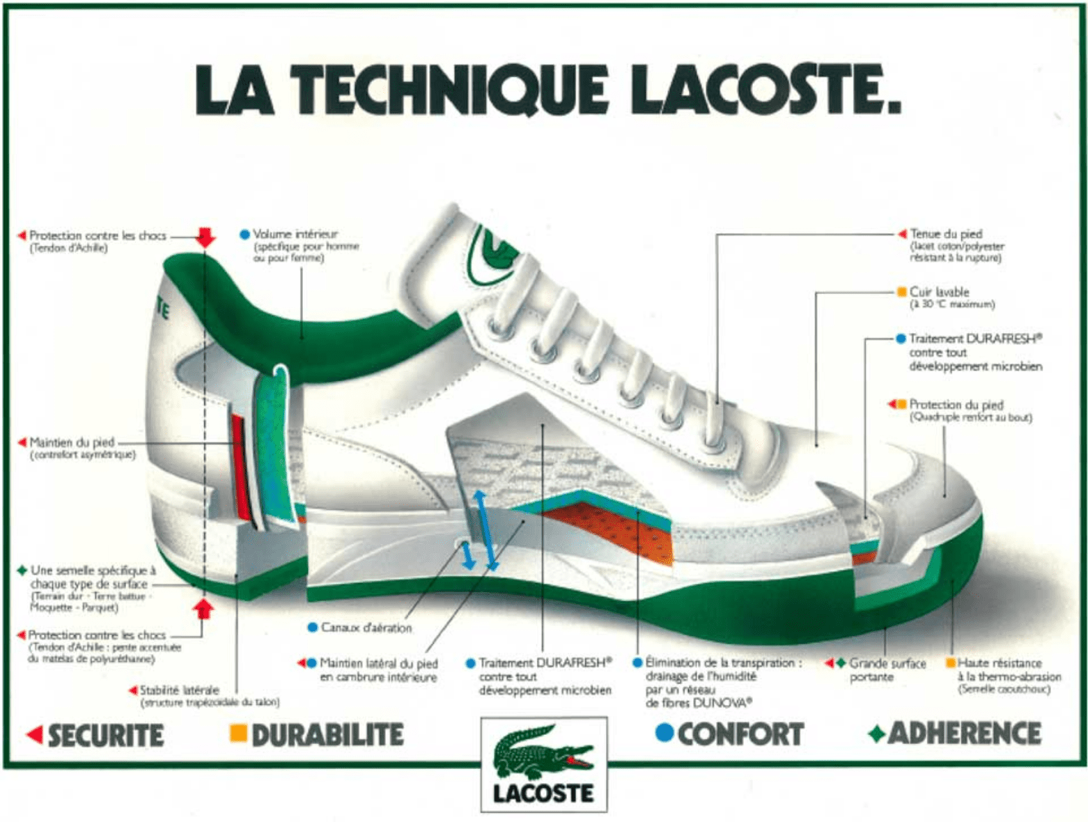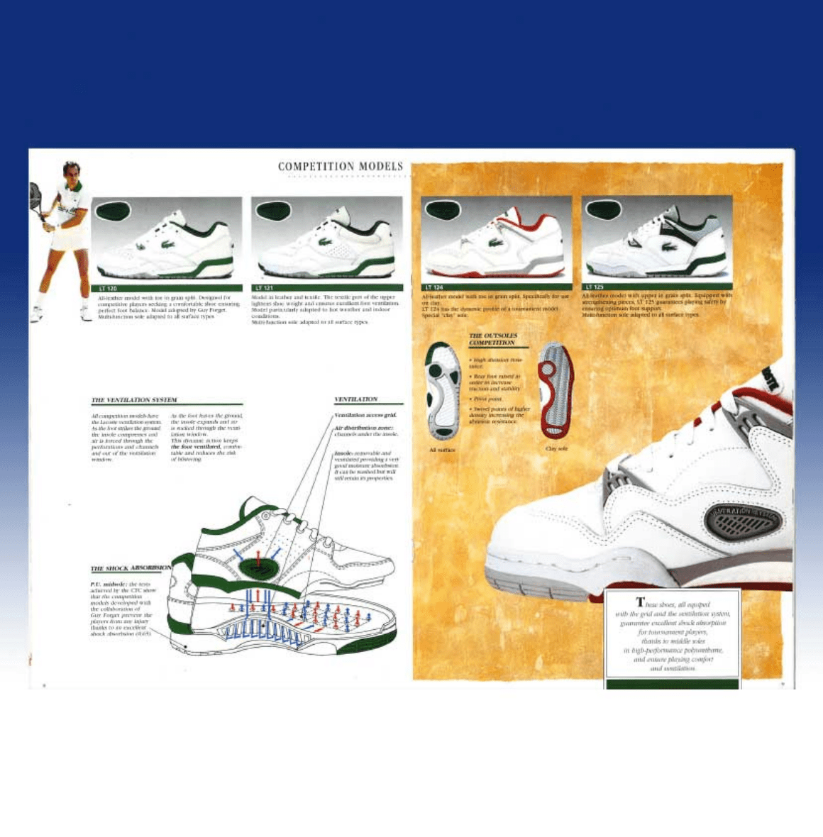 通気システム。いつの時代も、ラコステのシューズは技術面に先鋭的なアイデアを取り入れてきました。
