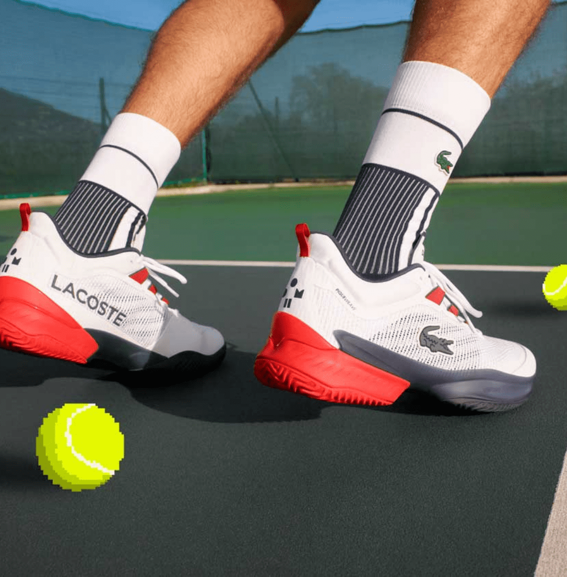 新作スニーカーが登場する広告キャンペーンには、靴作りに込めたラコステのスピリットが言葉と写真で描かれてきました。