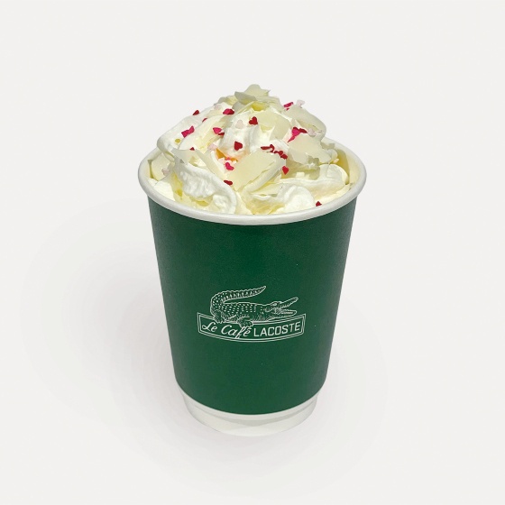 ラコステ初のストア併設カフェ “Le Café Lacoste” では、オリジナルカフェメニューをお楽しみいただけるほか、マグカップ、グラス、ウォーターボトルなど、オリジナルのワニロゴが効いた限定グッズも販売中。